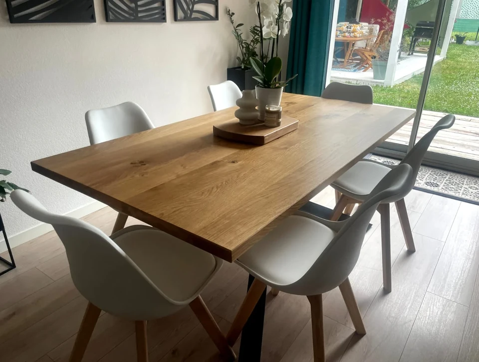 Le choix de l'essence dépend de plusieurs aspects : l'esthétique souhaitée, l'usage prévu, votre budget et l'harmonie avec votre décor. Chaque bois raconte sa propre histoire : le chêne apporte caractère et solidité, le noyer séduit par ses teintes chaudes et sa noblesse naturelle, le frêne se distingue par sa luminosité et ses veines expressives. Lors de notre première rencontre, vous pourrez voir et toucher différents échantillons pour affiner votre choix.
