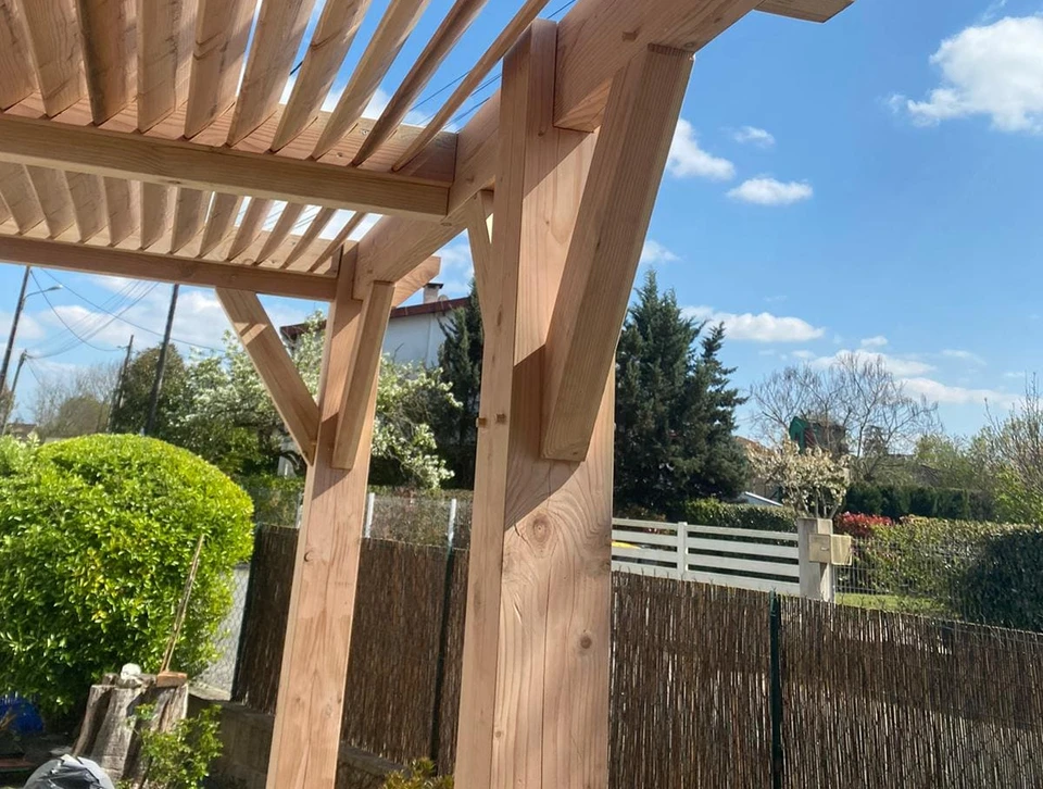 L'entretien de votre pergola ou tonnelle en bois est simple mais primordial pour conserver sa beauté naturelle. Un nettoyage annuel à l'eau savonneuse douce suffit généralement pour la rafraîchir. Tous les deux à trois ans, il est recommandé d'appliquer une huile nourrissante ou une lasure qui ravivera son aspect, renforçant ainsi sa résistance aux intempéries. Nous vous conseillons sur les produits adaptés à l'essence choisie lors de l'installation.